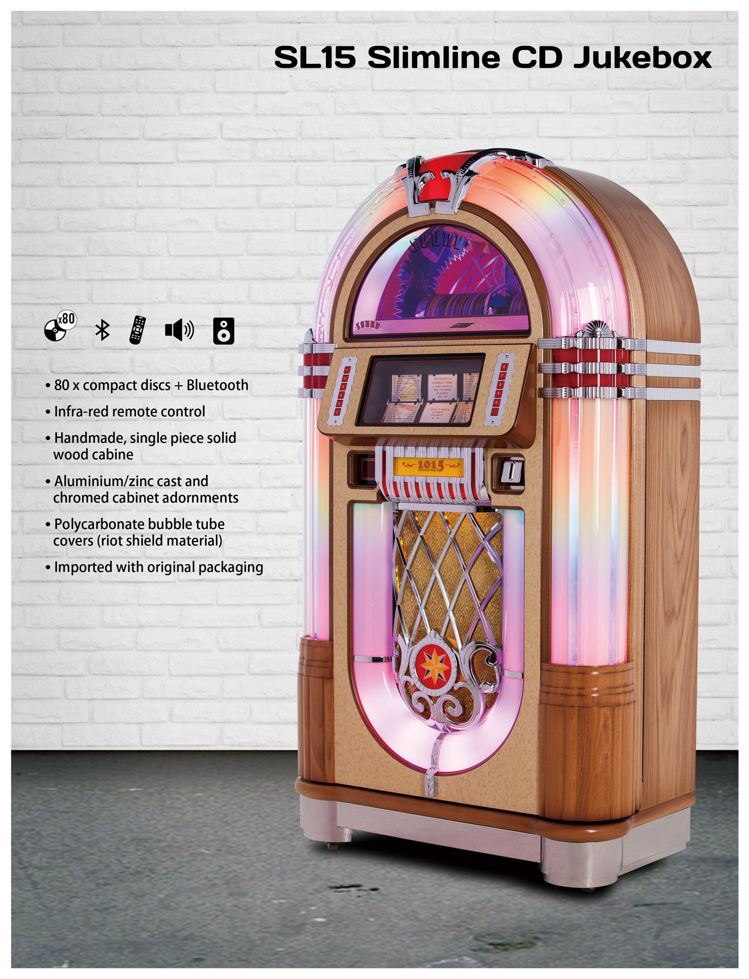 Ce jukebox correspond aux intérieurs plus étroits et pour ceux qui veulent profiter de l'ambiance de la forme SL tout en ayant un aspect plus moderne. D'une capacité de 80 CD comme le SL traditionnel, ce jukebox possède les mêmes caractéristiques d'écoute et de fonctionnement mis à part le monnayeur.