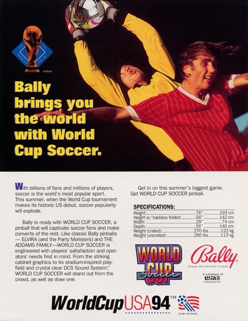 Inspiré de la 1994 FIFA World Cup organisée aux États-Unis, ce flipper est célèbre pour son gameplay rapide, son ballon mécanique au centre du plateau et son ambiance football unique.