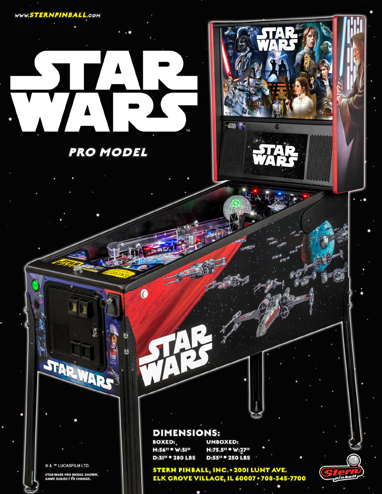 Le célèbre constructeur rend ici hommage à la trilogie originale du chef-d’œuvre cinématographique créé par George Lucas en 1977. Cet univers de science-fiction a su conquérir le cœur de nombreux fans à travers le monde. La richesse de ce monde fictif se prête particulièrement bien à une adaptation en flipper.