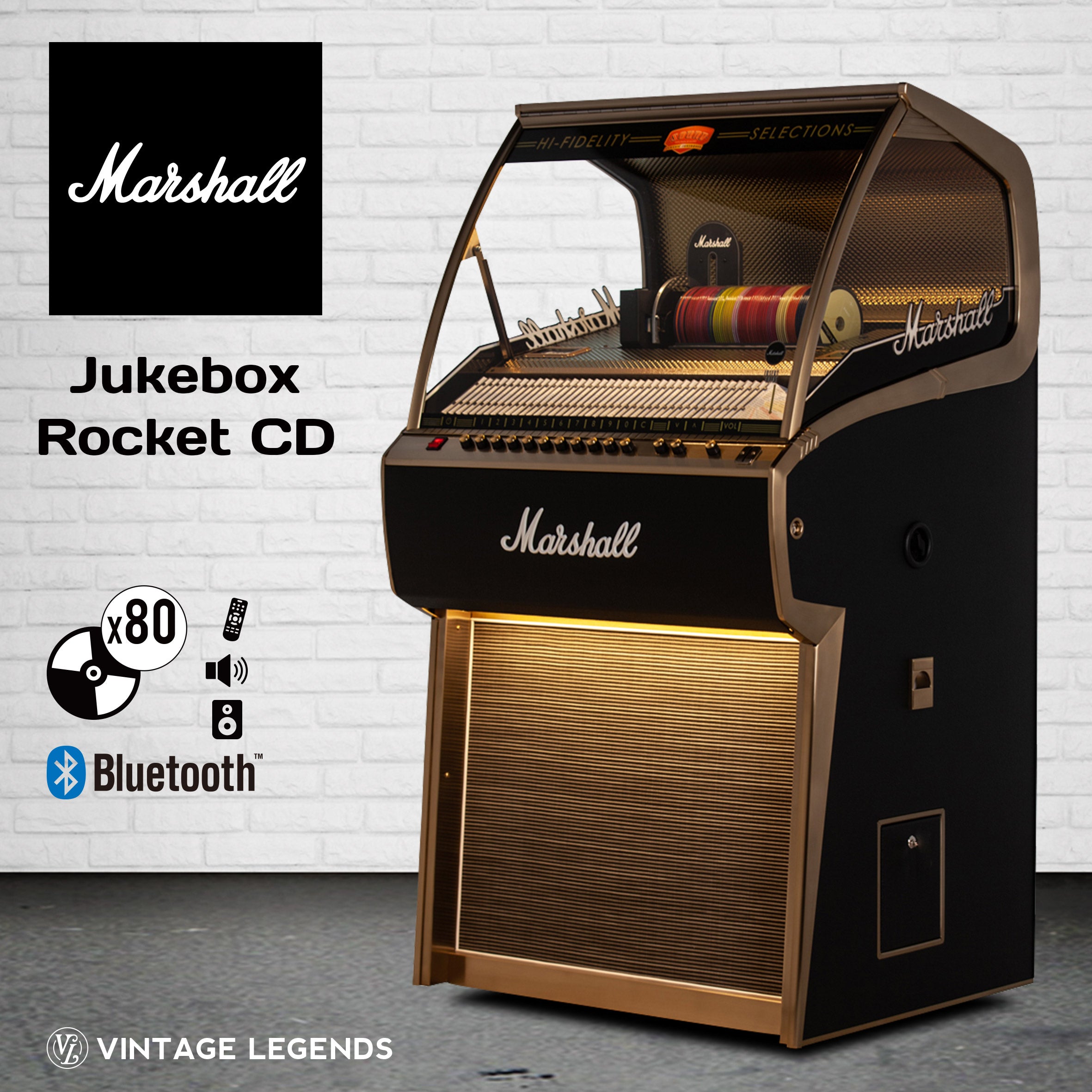 Un jukebox customisé par les équipes Marshall, fabricant d'amplificateurs de légende et fabriqué étroitement avec un autre fabricant britannique prestigieux, Sound Leisure, spécialiste de la conception et de la fabrication de jukebox depuis plus de 40 ans.