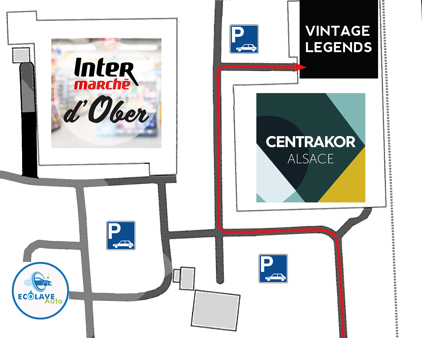 ➡ Garez-vous sur le parking du magasin Centrakor — notre showroom se trouve juste derrière le magasin.