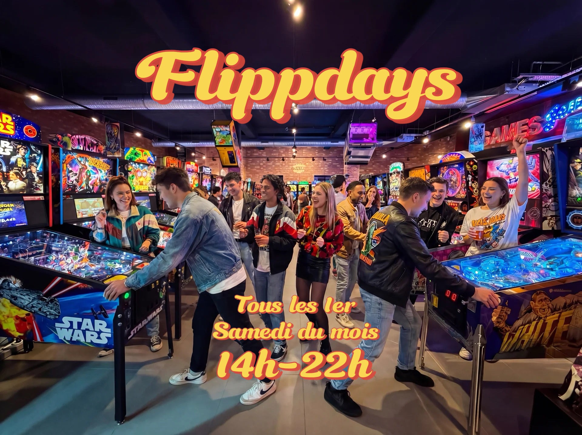 Les FlippDays, ce sont des journées 100% flippers, Boxeurs, Baby-Foots & Arcades avec + de 100 machines d'exception en free play, ambiance rétro, défis entre potes et retour direct dans les années 80–90.