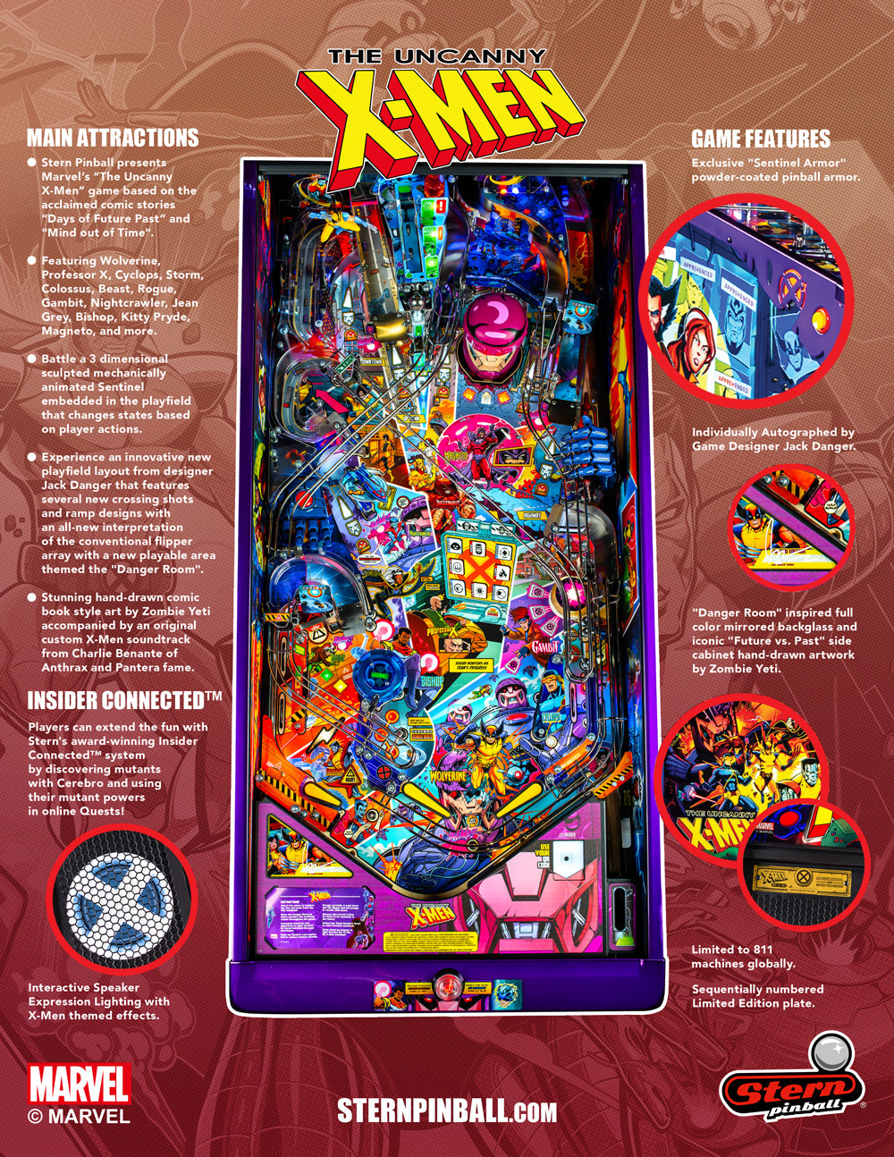 “X-Men is a time-honored franchise that Marvel and Stern fans love. It’s the superhero franchise that I grew up with. We’re excited for fans to experience the fun of The Uncanny X-Men pinball,” said Seth Davis, President & CEO of Stern Pinball.
